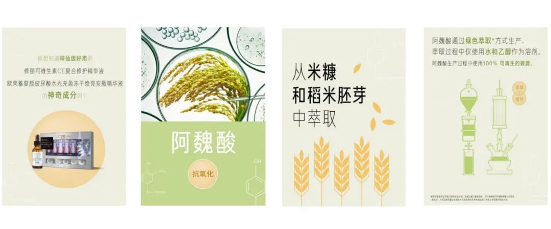 除了這些直接手段,企業(yè)也在用各種方式降低碳排放。目前,歐萊雅已有兩家中國工廠實(shí)現(xiàn)0碳排放,預(yù)計(jì)至2025年,歐萊雅所有工廠將100%實(shí)現(xiàn)碳中和。歐萊雅的許多原材料都來自大自然。廣受關(guān)注的歐萊雅注白瓶,以阿魏酸為核心美白成分。在強(qiáng)抗氧成分——阿魏酸的提取過程中,采用了綠色萃取方式。這種方式減少了能源消耗,使用了對環(huán)境影響最小的溶劑。