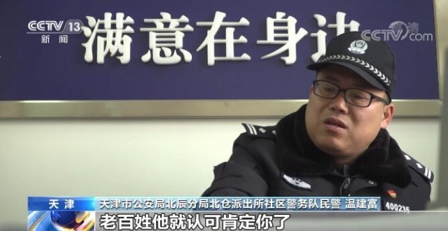 天津市公安局北辰分局北倉派出所社區(qū)警務(wù)隊(duì)民警 溫建富:因?yàn)樘焯煜氯?,天天能見到我,有一天能看見我三四趟。第一時(shí)間能夠找到我,有什么困難,有什么求助,有什么糾紛,能第一時(shí)間為他們解決。解決糾紛多,你在老百姓心目中地位就提高了,老百姓就認(rèn)可、肯定你,所以他有事兒他都找你。在我心目當(dāng)中,老百姓事無小事兒,把老百姓的事當(dāng)成自己的事兒解決,當(dāng)成自己的事兒辦,什么問題都能夠解決。