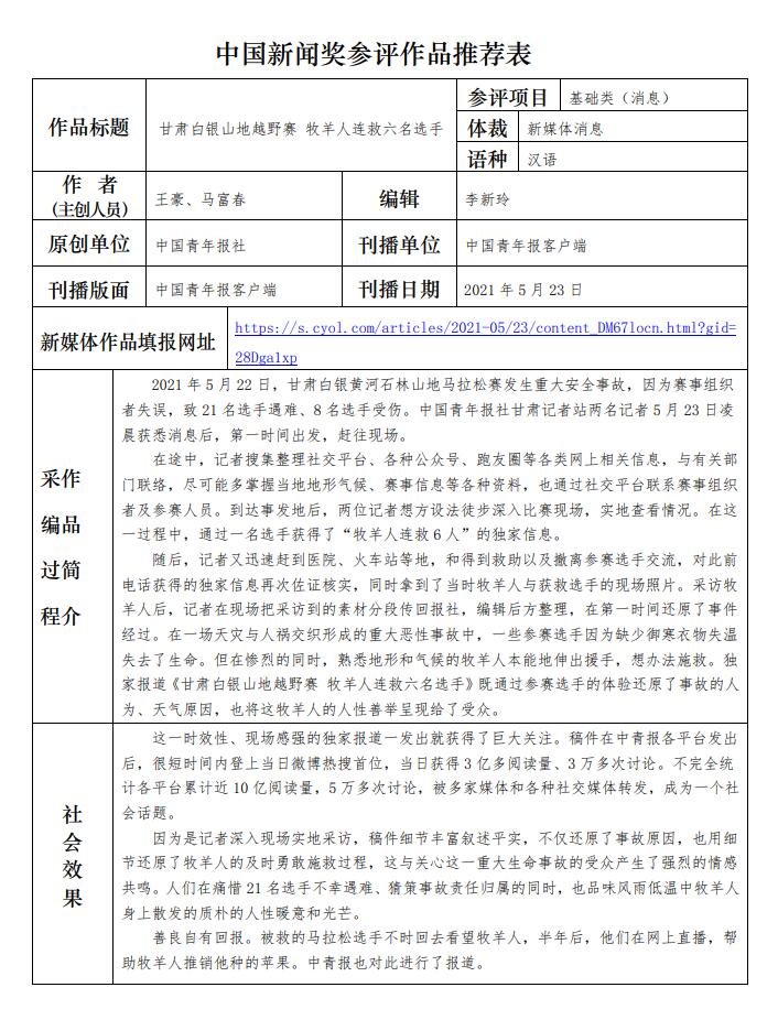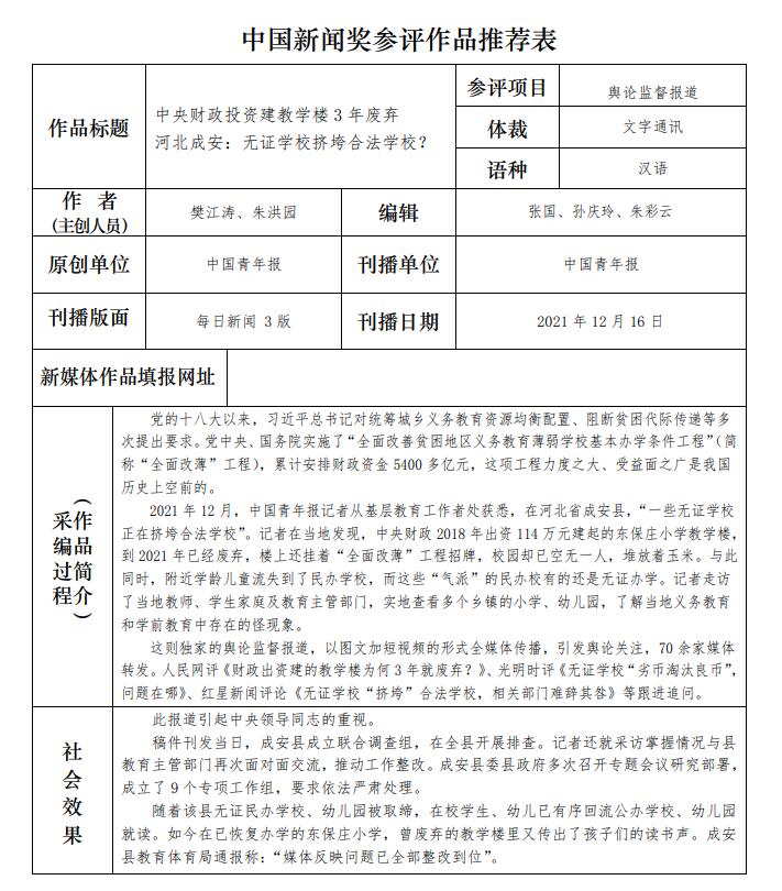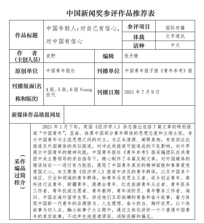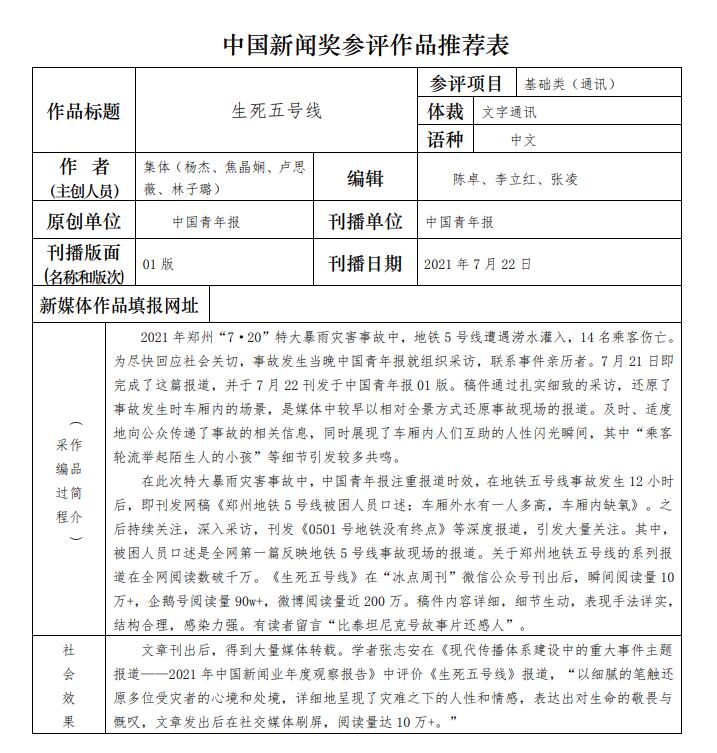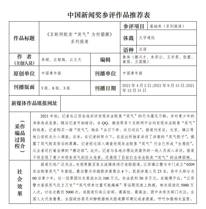 中國青年報(bào)社推薦參評(píng)第三十二屆中國新聞獎(jiǎng)報(bào)送作品公示