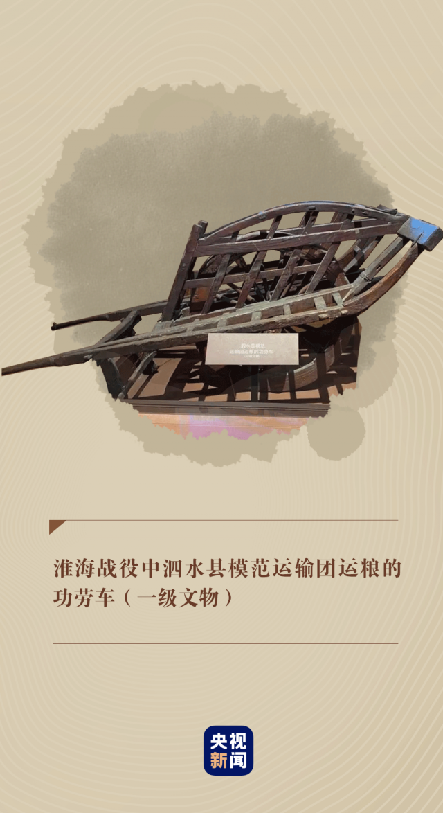 在中國共產(chǎn)黨歷史展覽館,靜臥著一輛淮海戰(zhàn)役中泗水縣模范運輸團運糧的功勞車。它向人們講述著當年硝煙彌漫的戰(zhàn)場上,人民群眾團結(jié)一心,用一輛輛小車推出戰(zhàn)役勝利的感人故事。