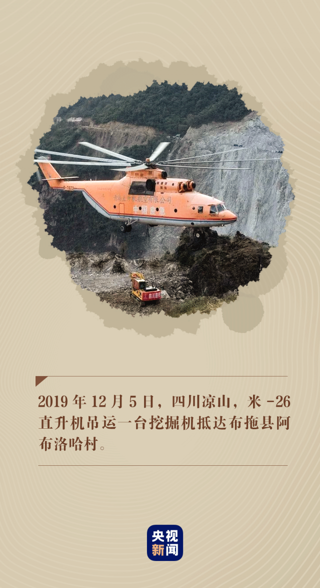 2019年11月30日,一架米-26直升機出現(xiàn)在村子上空。僅用八天時間,這架直升機成功將挖掘機、裝載機、潛孔鉆機一一運到村里,朝著最后的一公里掘進。