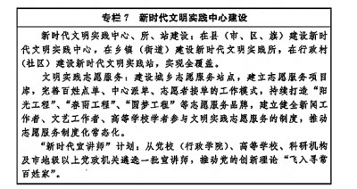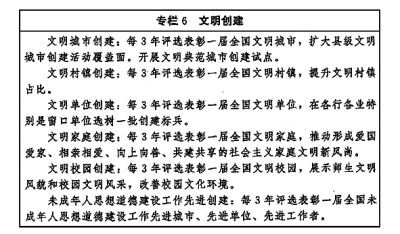 以實施文明創(chuàng)建工程為抓手,推動文明培育、文明實踐、文明創(chuàng)建不斷深入。創(chuàng)造性開展文明城市、文明村鎮(zhèn)、文明單位、文明家庭、文明校園和未成年人思想道德建設(shè)工作先進(jìn)等精神文明創(chuàng)建活動,拓展新時代文明實踐中心建設(shè)。弘揚科學(xué)精神,深入開展愛國衛(wèi)生運動,深化文明餐桌行動和“光盤行動”,倡導(dǎo)文明健康、綠色環(huán)保的生活方式。健全志愿服務(wù)體系,廣泛開展志愿服務(wù)關(guān)愛行動。加強網(wǎng)絡(luò)文明建設(shè)。