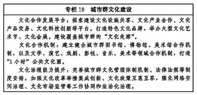 加強區(qū)域文化協(xié)同創(chuàng)新,健全合作互助、扶持補償機制,推動?xùn)|部地區(qū)以創(chuàng)新引領(lǐng)文化發(fā)展,加大力度支持中西部地區(qū)以及東北等老工業(yè)基地文化發(fā)展,扶持革命老區(qū)、民族地區(qū)、邊疆地區(qū)文化發(fā)展,形成相互促進(jìn)、優(yōu)勢互補、融合互動的區(qū)域文化發(fā)展格局。圍繞京津冀協(xié)同發(fā)展、長江經(jīng)濟帶發(fā)展、粵港澳大灣區(qū)建設(shè)、長三角一體化發(fā)展、黃河流域生態(tài)保護(hù)和高質(zhì)量發(fā)展等區(qū)域重大戰(zhàn)略,健全推進(jìn)區(qū)域內(nèi)文化協(xié)同發(fā)展機制,提升公共文化設(shè)施互聯(lián)互通水平,加強區(qū)域文化產(chǎn)業(yè)帶建設(shè),實現(xiàn)區(qū)域文化建設(shè)水平整體提高。促進(jìn)形成文化產(chǎn)業(yè)發(fā)展新格局,創(chuàng)新城市群文化一體化發(fā)展體制機制,共建高水平合作平臺,加強公共文化服務(wù)便利共享。完善以城帶鄉(xiāng)、城鄉(xiāng)融合的文化發(fā)展體制機制,發(fā)揮城市帶動輻射作用,加快城鄉(xiāng)間文化要素雙向流動,形成以點帶面、特色鮮明、優(yōu)勢互補、均衡配置的城鄉(xiāng)文化發(fā)展新格局。