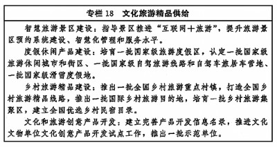 健全中央和地方旅游發(fā)展工作體制機制,完善文化和旅游融合發(fā)展體制機制,強化文化和旅游部門的行業(yè)管理職責(zé)。創(chuàng)新風(fēng)景名勝區(qū)管理體制,探索建立景區(qū)文化評價制度。理順飯店、民宿等旅游住宿業(yè)管理體制。