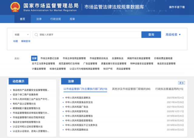 據悉,市場監(jiān)管法律法規(guī)規(guī)章數據庫是市場監(jiān)管法規(guī)數據的基礎庫,具有權威性和規(guī)范性,是社會公眾查詢、獲取市場監(jiān)管法規(guī)文本權威、規(guī)范、及時、便捷的信息化平臺。截至10月底,該庫收錄了120件法律、153件行政法規(guī)、243件部門規(guī)章,涵蓋市場監(jiān)管部門主要執(zhí)行的、其他涉及市場監(jiān)管部門職能的和行政執(zhí)法普遍適用的法律、行政法規(guī),以及市場監(jiān)管總局公布和參與制定的所有部門規(guī)章。