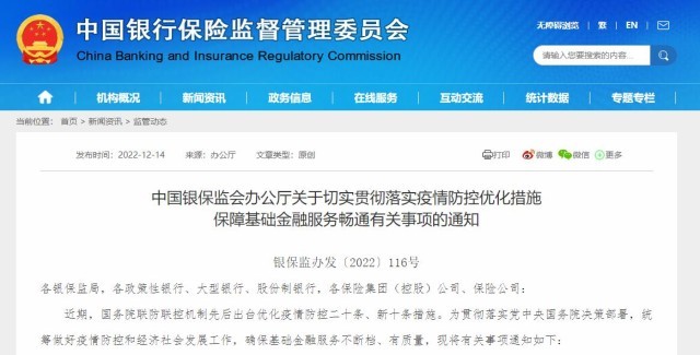 央視網(wǎng)消息:12月13日,中國銀保監(jiān)會(huì)辦公廳發(fā)文《關(guān)于切實(shí)貫徹落實(shí)疫情防控優(yōu)化措施 保障基礎(chǔ)金融服務(wù)暢通有關(guān)事項(xiàng)的通知》。