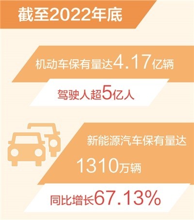 本報北京1月11日電 (記者張?zhí)炫啵┕膊?1日發(fā)布統(tǒng)計顯示,2022年全國機動車保有量達4.17億輛,其中汽車3.19億輛;全國機動車駕駛人達5.02億人,其中汽車駕駛人4.64億人。2022年全國新注冊登記機動車3478萬輛,新領證駕駛人2923萬人。