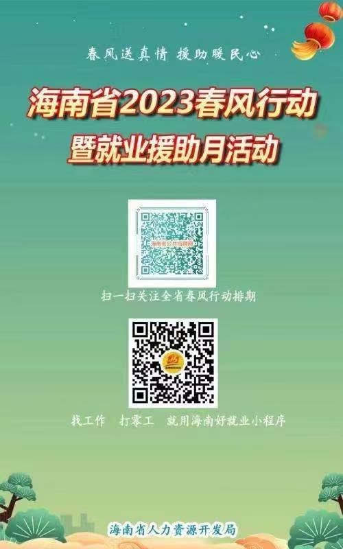 近日,人力資源社會(huì)保障部推出的2023年春風(fēng)行動(dòng)暨就業(yè)援助月活動(dòng)正在各地火熱開展。今年,多地還出現(xiàn)了直播帶崗這一新的招聘會(huì)模式。人社部將及時(shí)發(fā)布各地的活動(dòng)情況,送崗位到勞動(dòng)者身邊。大家可以通過掃描下方二維碼,進(jìn)入網(wǎng)站鏈接或微信小程序進(jìn)行查看。