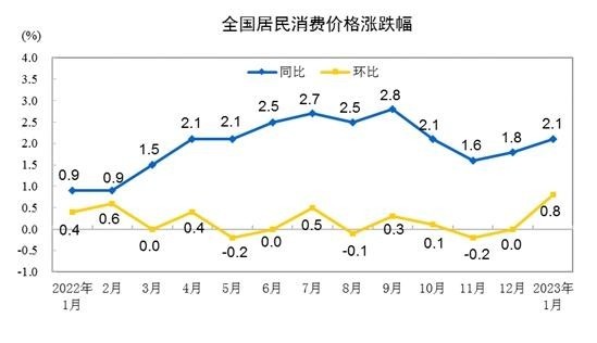 中新網(wǎng)2月10日電(中新財(cái)經(jīng)記者 謝藝觀)10日,國家統(tǒng)計(jì)局公布2023年1月份全國居民消費(fèi)價(jià)格(CPI)數(shù)據(jù)。受春節(jié)效應(yīng)和疫情防控政策優(yōu)化調(diào)整等因素影響,1月份CPI同比上漲2.1%,重回“2時(shí)代”。
