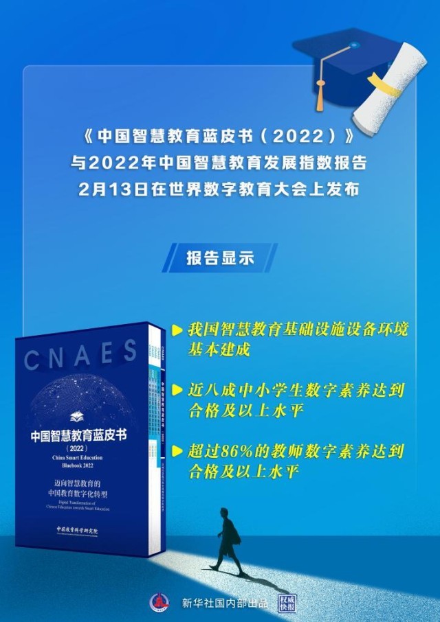 2月13日,在教育部與中國(guó)聯(lián)合國(guó)教科文組織全國(guó)委員會(huì)舉辦的世界數(shù)字教育大會(huì)上,《中國(guó)智慧教育藍(lán)皮書(2022)》與2022年中國(guó)智慧教育發(fā)展指數(shù)報(bào)告發(fā)布。
