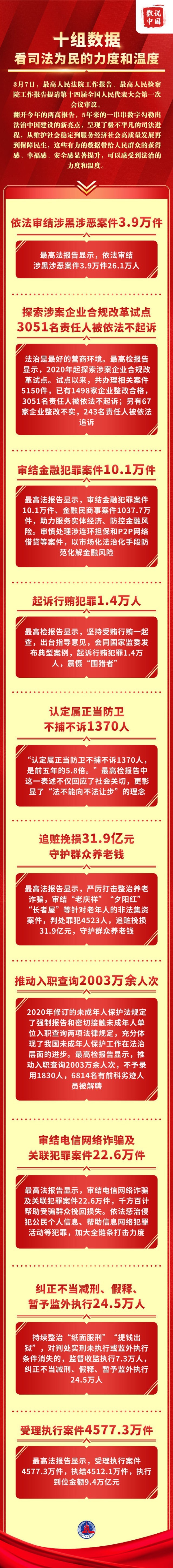 翻開今年的兩高報告,5年來的一串串數(shù)字勾勒出法治中國建設的新亮點,呈現(xiàn)了極不平凡的司法進程,從維護社會穩(wěn)定到服務經(jīng)濟社會高質(zhì)量發(fā)展再到保障民生,這些有力的數(shù)據(jù)帶給人民群眾的獲得感、幸福感、安全感顯著提升,可以感受到法治的力度和溫度。