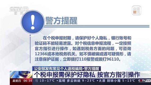 警方提醒:個稅申報需保護好隱私,按官方指引操作