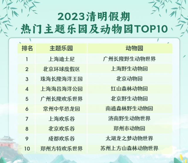 《報(bào)告》顯示,各地主題樂(lè)園、野生動(dòng)物園、海洋館清明假期期間的預(yù)訂量靠前,圍繞一些知名主題樂(lè)園推出的親子一日游線路也深受歡迎。