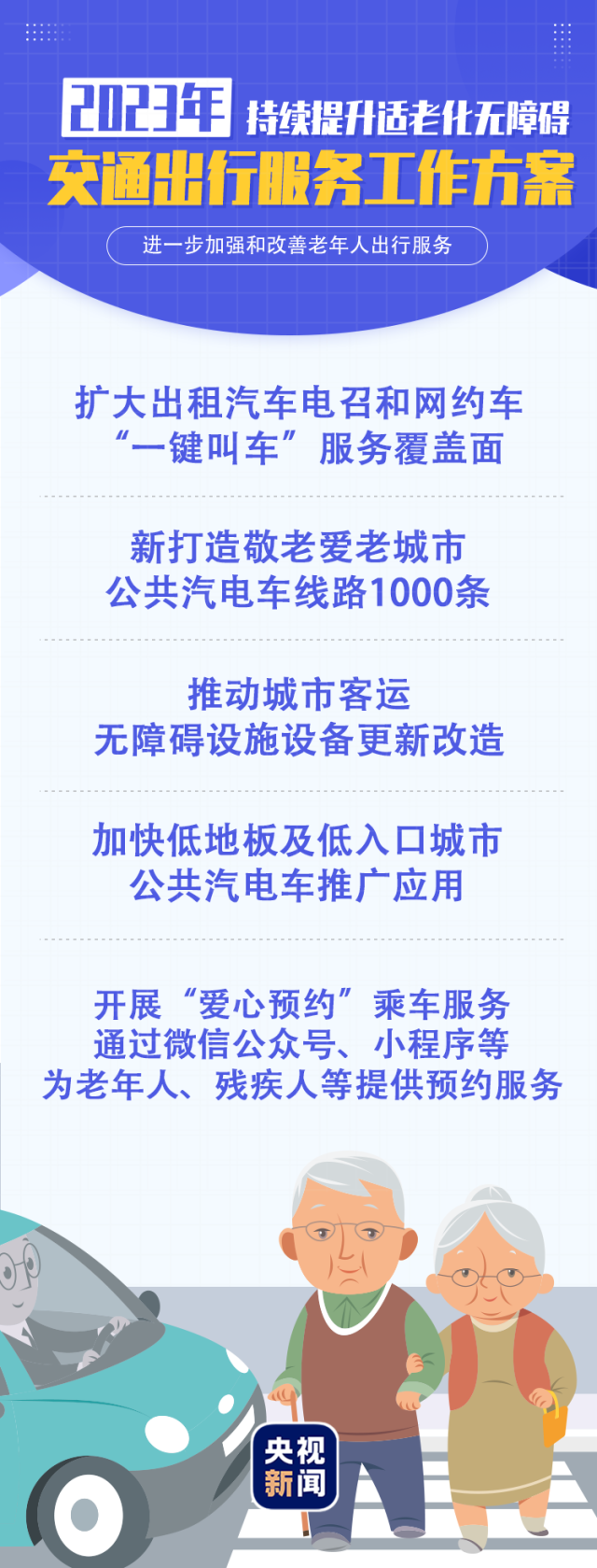 《2023年持續(xù)提升適老化無障礙交通出行服務工作方案》提出多項目標任務,滿足廣大老年人無障礙出行服務需要。