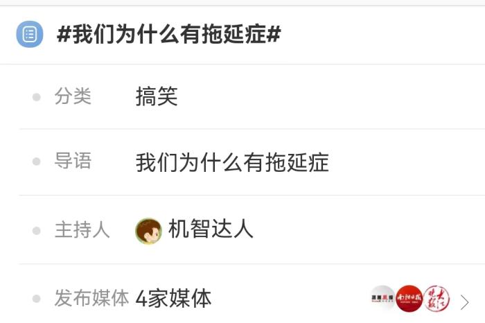 不過,年輕人使用這個梗時的狀態(tài),往往是“半真半假”:一方面為自己的“拖延”感到焦慮、自責,所以選擇勇敢地說出來,并且試圖在同道中人的回應里尋找共鳴;另一方面,“拖延癥”并不是一個真的讓人感到萬分愧疚的詞匯,人們在玩梗時甚至可能帶上些許調(diào)侃色彩,在一定程度上減輕心理負擔,何樂而不為?