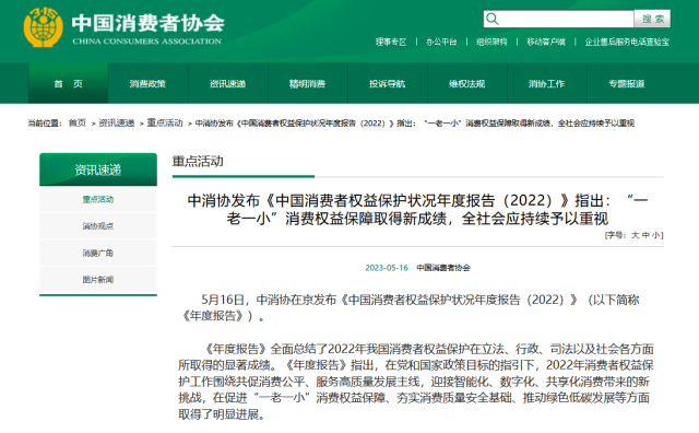 中消協(xié)發(fā)布2022年消保年度報(bào)告:網(wǎng)游低俗化、適老建設(shè)等四方面問題仍突出