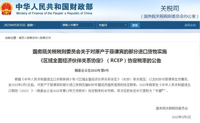 6月2日起中國將與菲律賓相互實(shí)施RCEP關(guān)稅減讓