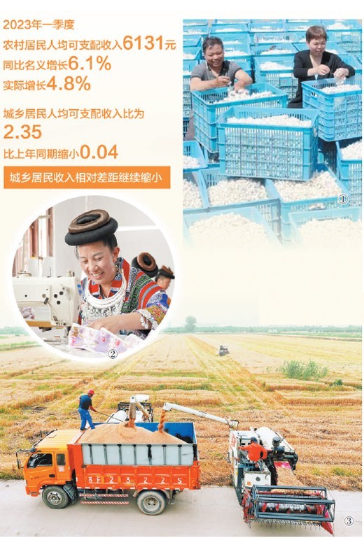 國家統(tǒng)計局發(fā)布的數(shù)據(jù)顯示,去年農(nóng)村居民人均可支配收入首次邁上2萬元這個新臺階,城鄉(xiāng)居民收入相對差距持續(xù)縮小。今年一季度,農(nóng)村居民人均可支配收入繼續(xù)保持增長勢頭,同比名義增長6.1%,實際增長4.8%,比去年全年提高0.6個百分點(diǎn)。