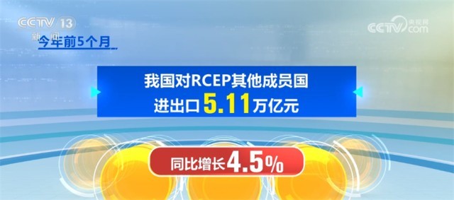 隨著區(qū)域經(jīng)濟(jì)交往不斷互聯(lián)互通,我國(guó)對(duì)《區(qū)域全面經(jīng)濟(jì)伙伴關(guān)系協(xié)定》(RCEP)其他成員進(jìn)出口穩(wěn)定增長(zhǎng),今年前5個(gè)月,我國(guó)對(duì)RCEP其他成員國(guó)進(jìn)出口5.11萬億元,同比增長(zhǎng)4.5%,RCEP占我國(guó)外貿(mào)比重超過30%。
