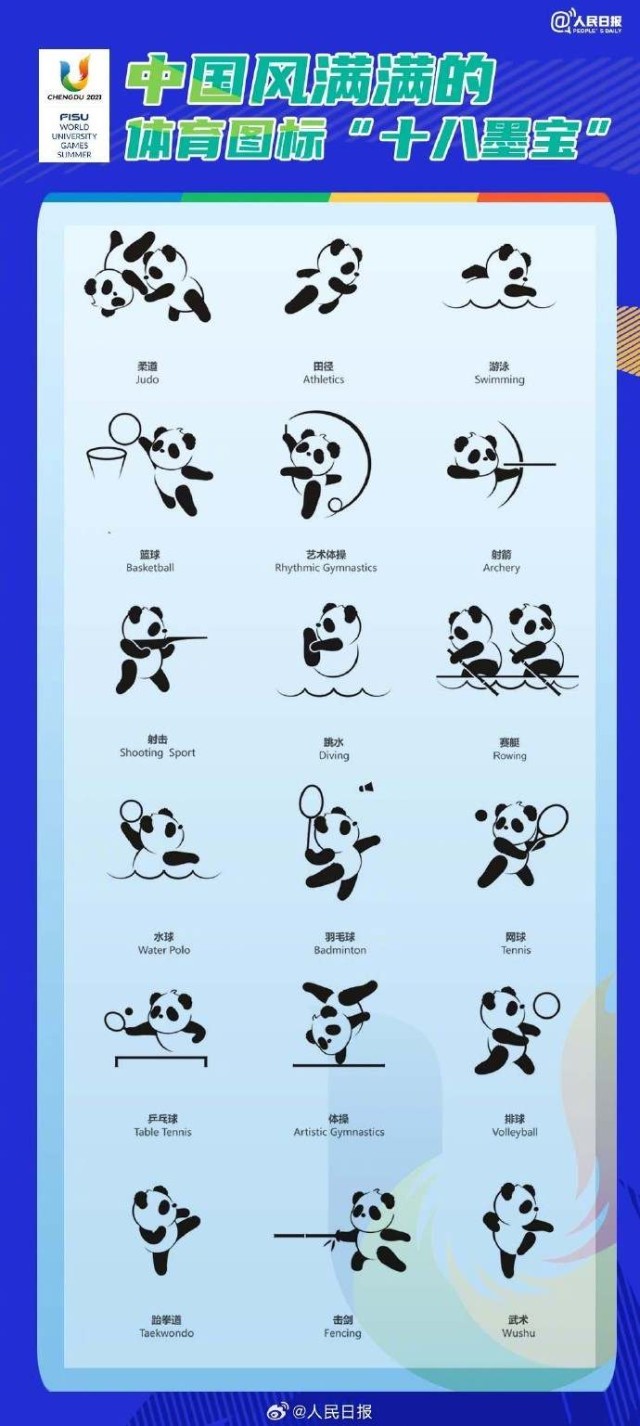 第31屆世界大學(xué)生夏季運動會將于7月28日—8月8日在四川成都舉辦?!叭貙殹薄叭鼗稹薄叭毓狻保瞪捣植磺??可愛的熊貓圖標(biāo),認(rèn)得出是哪個項目嗎?此外,這些體壇名將曾參加過大運會!成都大運會還有2周開幕,期待!