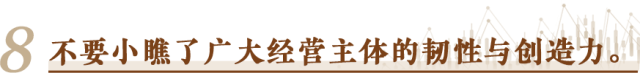 書寫這份“中國(guó)經(jīng)濟(jì)半年報(bào)”的,不光是宏觀政策的制定者,還有億萬(wàn)經(jīng)營(yíng)主體。它們?cè)谑袌?chǎng)經(jīng)濟(jì)風(fēng)風(fēng)雨雨中摸爬滾打過來(lái),承載著就業(yè),創(chuàng)造著財(cái)富,推動(dòng)著創(chuàng)新,體現(xiàn)著社會(huì)責(zé)任。無(wú)論是服務(wù)業(yè)還是制造業(yè),無(wú)論是傳統(tǒng)產(chǎn)業(yè)還是戰(zhàn)略性新興產(chǎn)業(yè),哪一行哪一業(yè),缺得了充滿活力的經(jīng)營(yíng)主體?看宏觀政策是否有效,標(biāo)準(zhǔn)之一就是看能否持續(xù)廣泛激發(fā)經(jīng)營(yíng)主體的活力。一句話,任何時(shí)候都不要小瞧了廣大經(jīng)營(yíng)主體的韌性與創(chuàng)造力,尊重他們,幫助他們,相信他們。