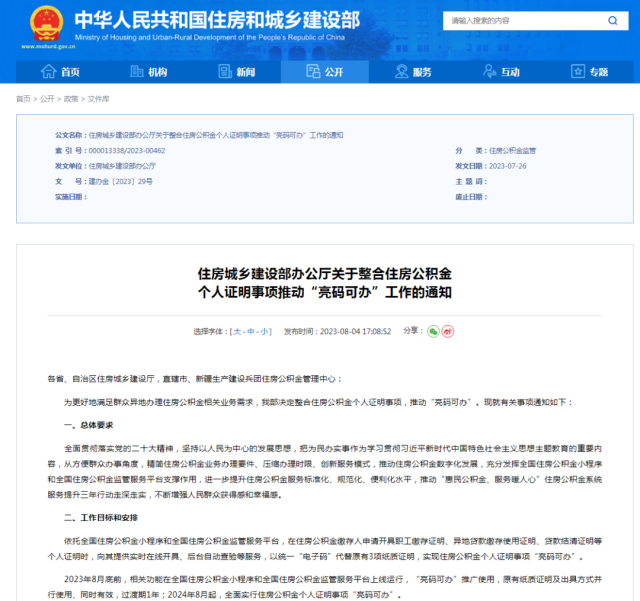 近日,住房城鄉(xiāng)建設(shè)部印發(fā)通知,決定整合住房公積金個(gè)人證明事項(xiàng),依托全國住房公積金小程序和全國住房公積金監(jiān)管服務(wù)平臺(tái),在住房公積金繳存人申請(qǐng)開具職工繳存證明、異地貸款繳存使用證明、貸款結(jié)清證明等個(gè)人證明時(shí),向其提供實(shí)時(shí)在線開具、后臺(tái)自動(dòng)查驗(yàn)等服務(wù),以統(tǒng)一“電子碼”代替原有3項(xiàng)紙質(zhì)證明,實(shí)現(xiàn)住房公積金個(gè)人證明事項(xiàng)“亮碼可辦”。