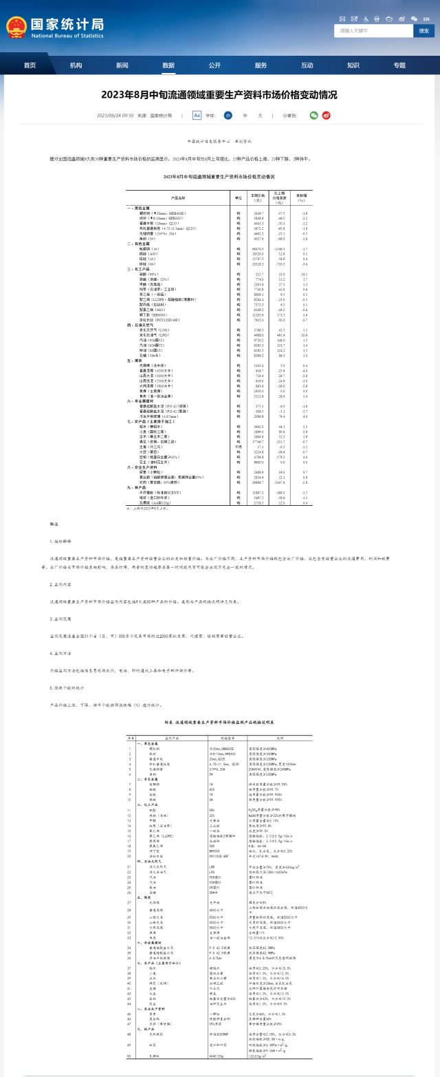 央視網(wǎng)消息:國家統(tǒng)計局?jǐn)?shù)據(jù)顯示,2023年8月中旬與8月上旬相比,25種產(chǎn)品價格上漲,23種下降,2種持平。其中,生豬(外三元)價格報17.1元/千克,環(huán)比下降1.2%。