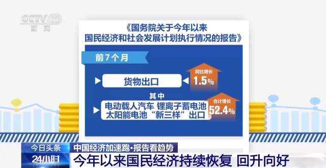 報(bào)告指出,前7個(gè)月貨物出口同比增長1.5%,其中電動(dòng)載人汽車、鋰離子蓄電池、太陽能電池“新三樣”出口合計(jì)增長52.4%。知識密集型服務(wù)貿(mào)易較快增長,旅行服務(wù)貿(mào)易明顯恢復(fù),上半年服務(wù)進(jìn)出口同比增長8.5%。推動(dòng)外資標(biāo)志性項(xiàng)目落地實(shí)施,外貿(mào)外資平穩(wěn)發(fā)展。