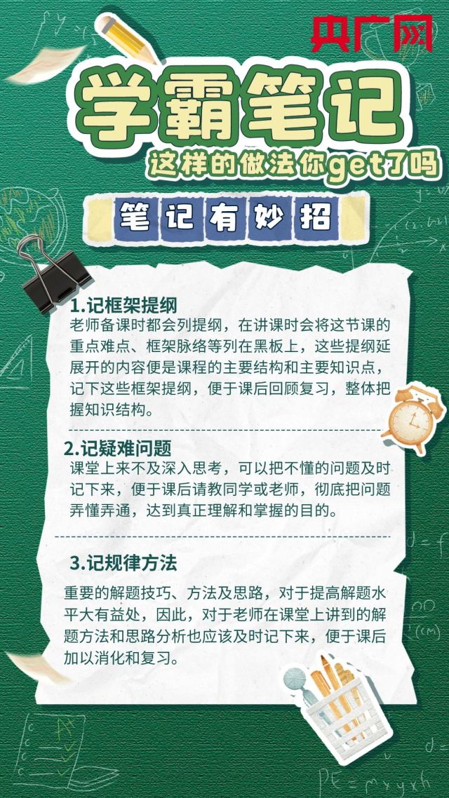 新學(xué)期,新氣象。努力學(xué)習(xí)的第一步從記好課堂筆記開始。如何把筆記做得清晰凝練?做筆記都有哪些方法?戳圖了解↓助你新學(xué)期高效學(xué)習(xí)!