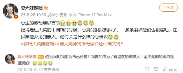 預(yù)告片發(fā)布后,up主“夏天妹妹噢”難掩激動之情,她清楚地記得自己走進(jìn)大英博物館的中國館時,心真的狠狠顫抖了?!耙粭l條裂紋他們也很痛吧,在異國他鄉(xiāng)見到親人,他們會是什么樣的心情呢?”同時,她也為自己真正成為了有溫度的傳媒人而驕傲。