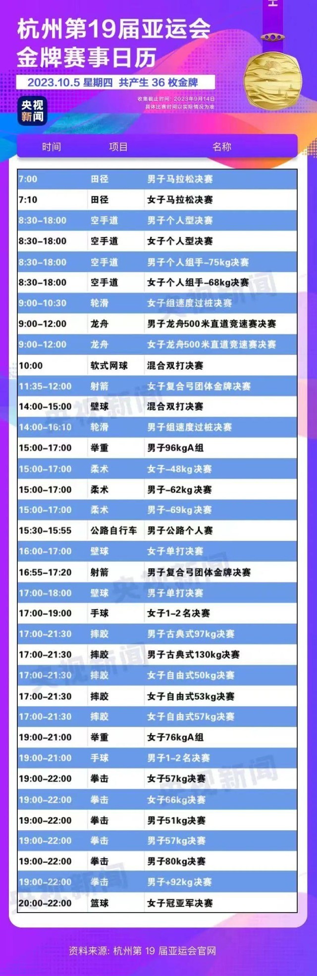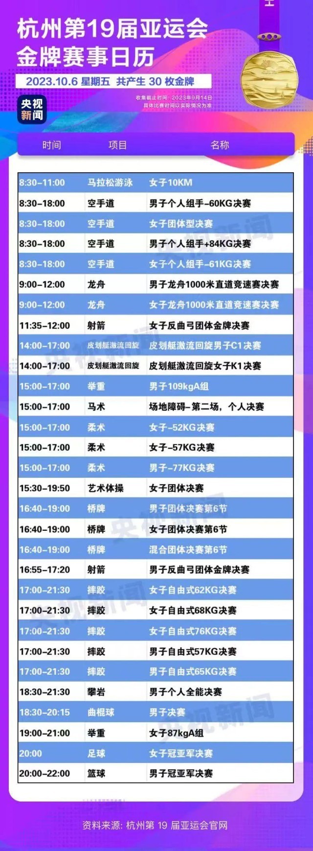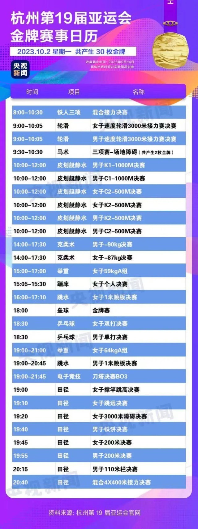 最后,小編還為你準備了一份杭州亞運會金牌賽事日歷,日歷里包含所有481枚金牌產(chǎn)生的時間?;瑒邮种?,看看你關注的比賽在哪天舉行。