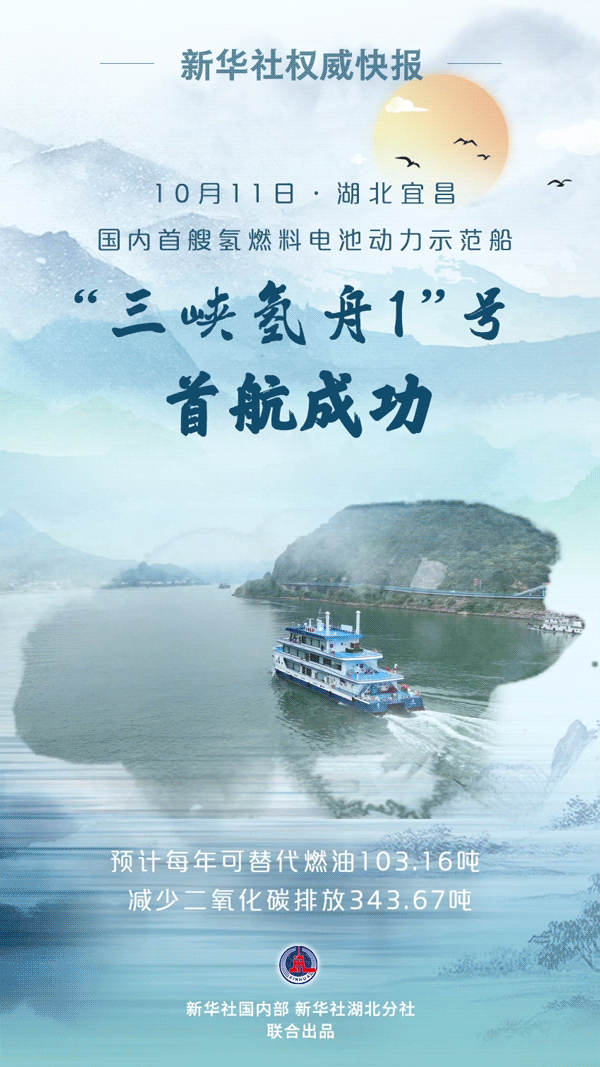 氫燃料電池動(dòng)力示范船“三峽氫舟1”號(hào)10月11日上午在湖北宜昌三峽游客中心(九碼頭)完成首航,這標(biāo)志著氫燃料電池技術(shù)在內(nèi)河船舶應(yīng)用實(shí)現(xiàn)零的突破。據(jù)測算,“三峽氫舟1”號(hào)相比傳統(tǒng)燃油動(dòng)力船舶,預(yù)計(jì)每年可替代燃油103.16噸,減少二氧化碳排放343.67噸。