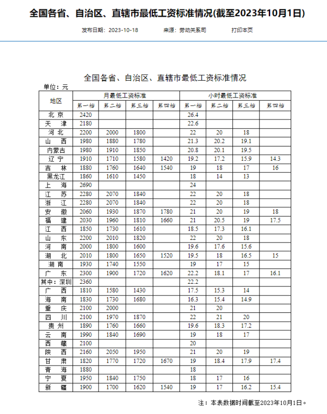 全國打工人最低工資標準:京滬最高 河南等16省份第一檔月薪不低于2000元