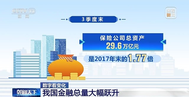 保險(xiǎn)方面,3季度末,保險(xiǎn)公司總資產(chǎn)29.6萬(wàn)億元,是2017年末的1.77倍。從2018年到今年3季度末,保險(xiǎn)公司賠款與給付累計(jì)支出8.4萬(wàn)億元,保險(xiǎn)的保障功能日益突出。