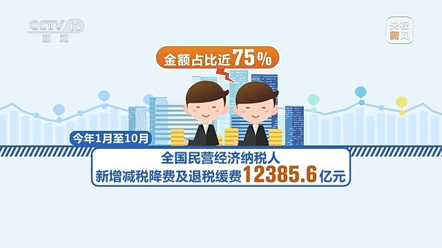 我國(guó)延續(xù)、優(yōu)化的這批階段性稅費(fèi)優(yōu)惠政策中,民營(yíng)經(jīng)濟(jì)納稅人是主要受益對(duì)象。國(guó)家稅務(wù)總局?jǐn)?shù)據(jù)顯示,今年1月至10月,全國(guó)民營(yíng)經(jīng)濟(jì)納稅人新增減稅降費(fèi)及退稅緩費(fèi)12385.6億元,金額占比近75%。