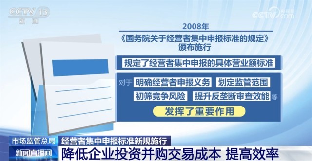 市場監(jiān)管總局介紹,經(jīng)營者集中申報標準是經(jīng)營者集中反壟斷審查制度的重要內(nèi)容。2008年《國務院關于經(jīng)營者集中申報標準的規(guī)定》頒布施行,規(guī)定了經(jīng)營者集中申報的具體營業(yè)額標準,對于明確經(jīng)營者申報義務、劃定監(jiān)管范圍、初篩競爭風險、提升反壟斷審查效能等發(fā)揮了重要作用。