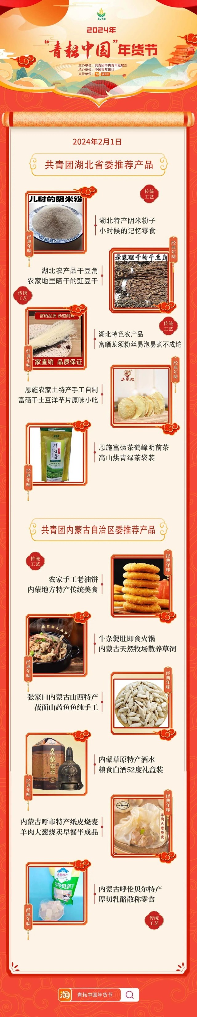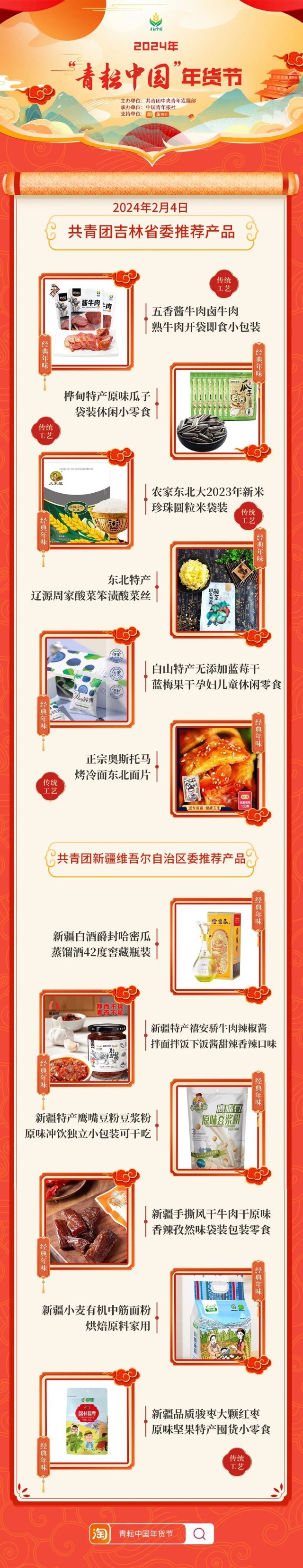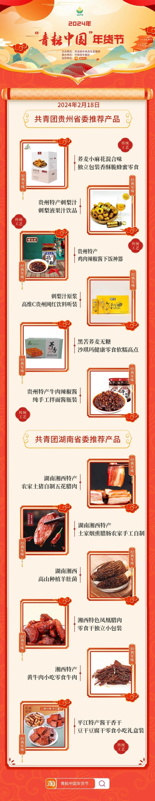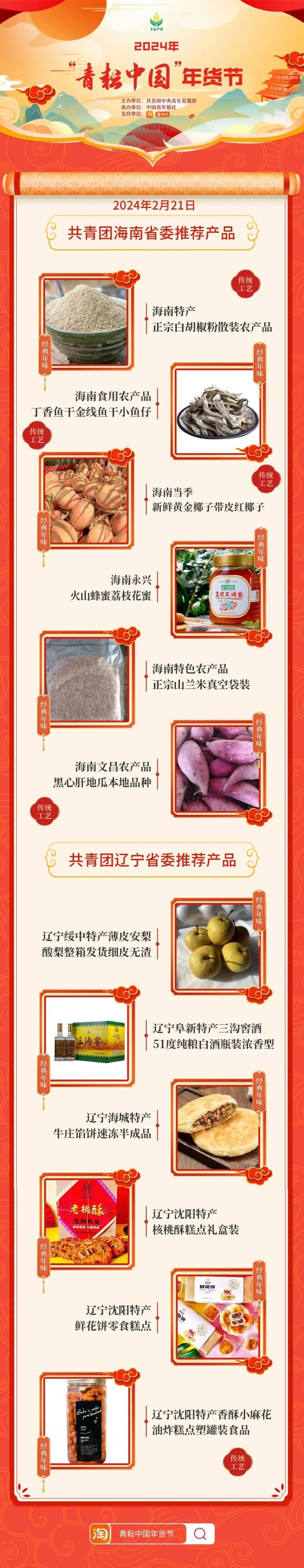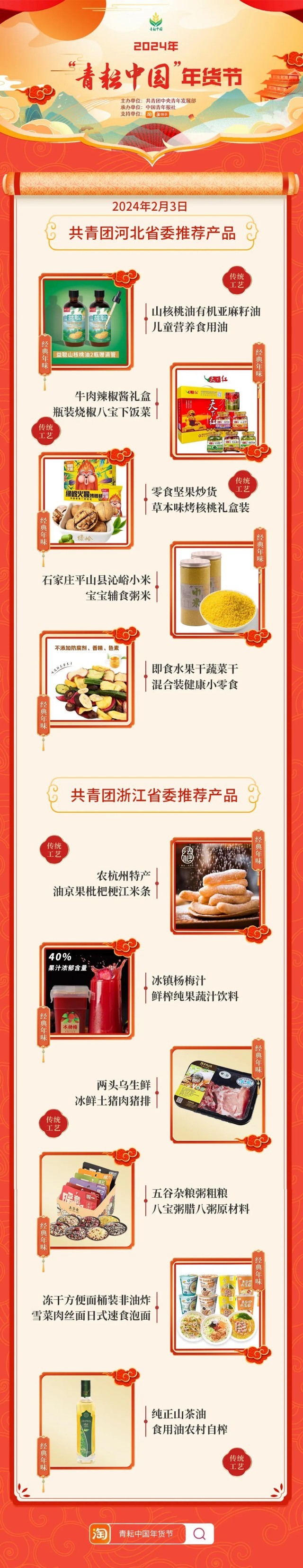 2024年“青耘中國”年貨節(jié)將于1月31日至2月24日,開展“一日兩省”主題日活動。用戶可在淘寶APP搜索“青耘中國年貨節(jié)”進入專題頁選購產(chǎn)品。