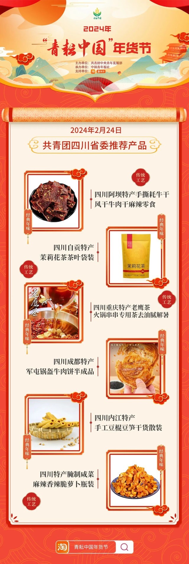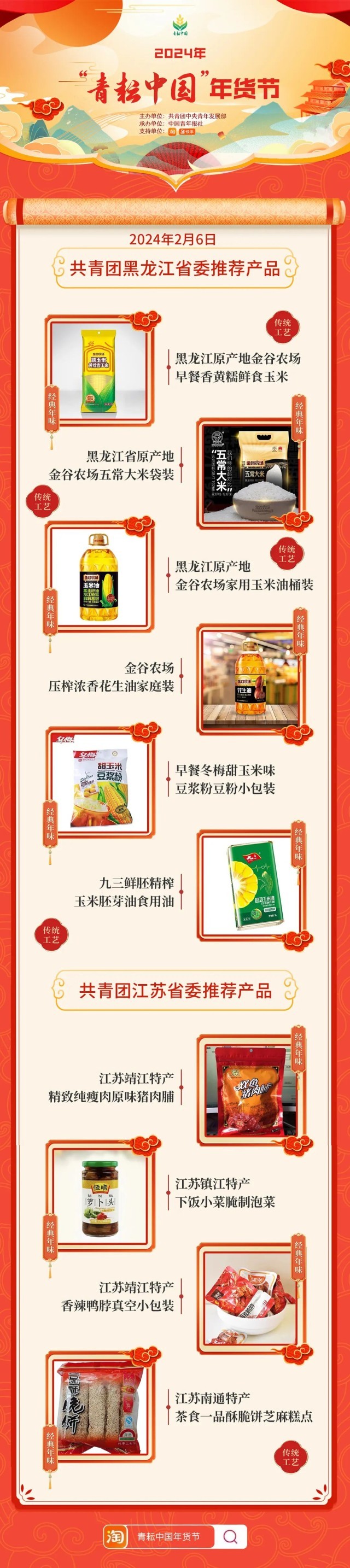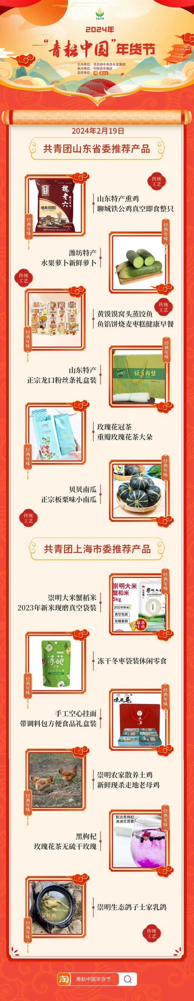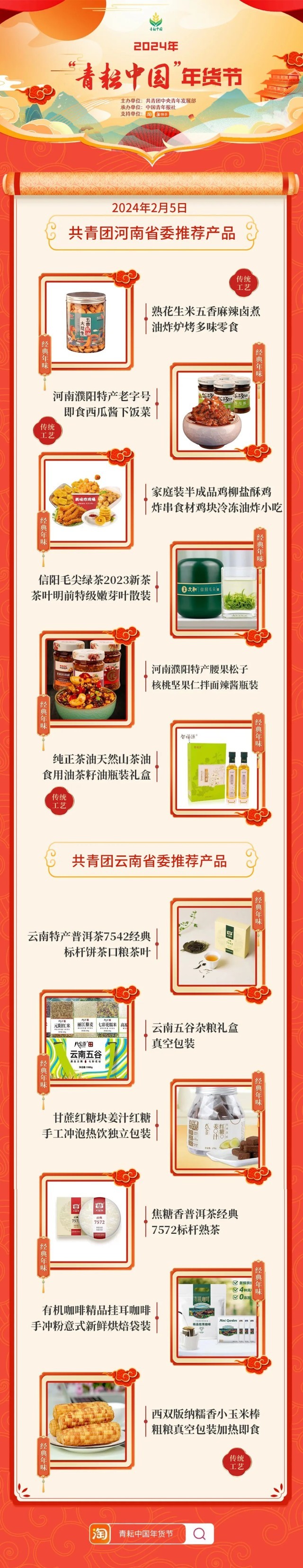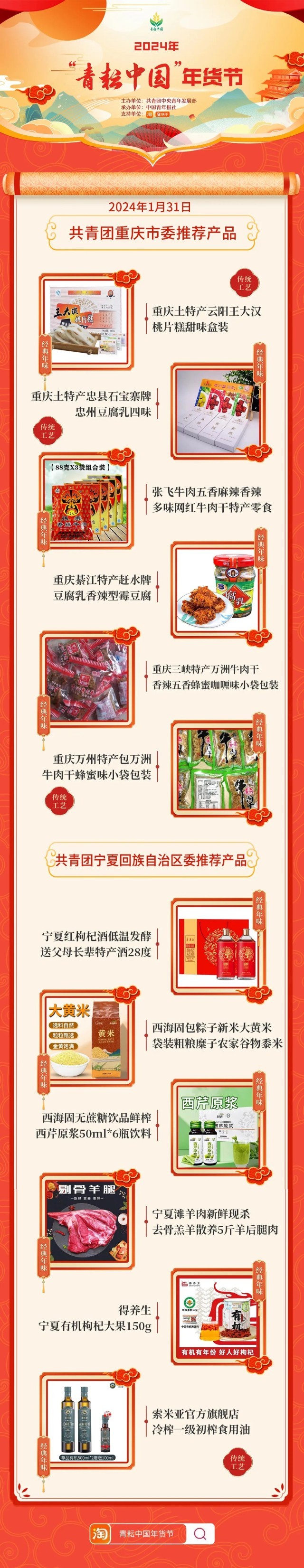 2024年“青耘中國”年貨節(jié)將于1月31日至2月24日,開展“一日兩省”主題日活動。用戶可在淘寶APP搜索“青耘中國年貨節(jié)”進入專題頁選購產(chǎn)品。
