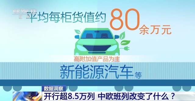 全程時(shí)刻表中歐班列速度最快,貨值最高。它的貨品以新能源汽車等高附加值產(chǎn)品為主。平均每柜貨值約80余萬元,比普通班列高出13%。去年中歐班列承載的貿(mào)易額超過750億美元,比前三年的平均值增長(zhǎng)了50%。