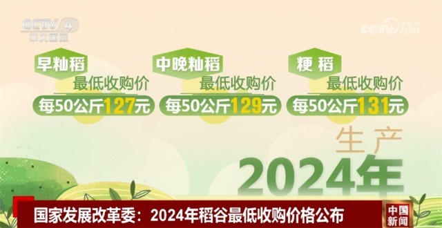 記者從國家發(fā)展改革委了解到,經(jīng)國務(wù)院批準(zhǔn),今年國家繼續(xù)在稻谷主產(chǎn)區(qū)實行最低收購價政策,2024年生產(chǎn)的早秈稻(三等)、中晚秈稻和粳稻最低收購價分別為每50公斤127元、129元和131元。限定2024年最低收購價稻谷收購總量為5000萬噸,其中秈稻2000萬噸、粳稻3000萬噸。