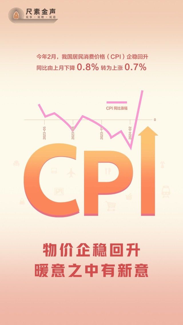 國(guó)家統(tǒng)計(jì)局發(fā)布的最新數(shù)據(jù)顯示,今年2月,我國(guó)居民消費(fèi)價(jià)格(CPI)企穩(wěn)回升,同比由上月下降0.8%轉(zhuǎn)為上漲0.7%,其中扣除食品和能源價(jià)格的核心CPI漲幅為2022年2月以來最高。