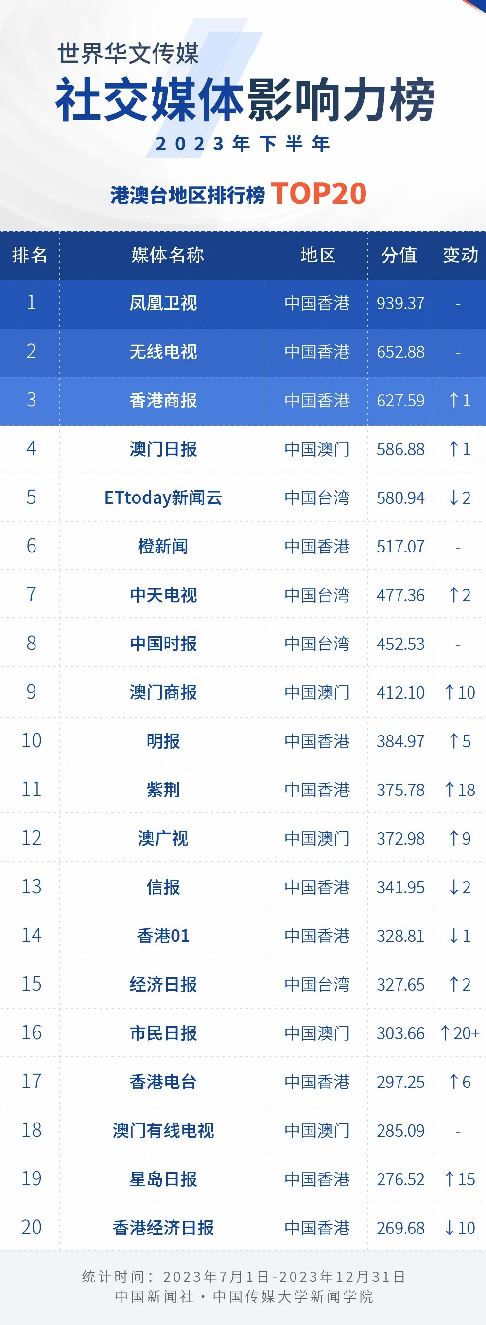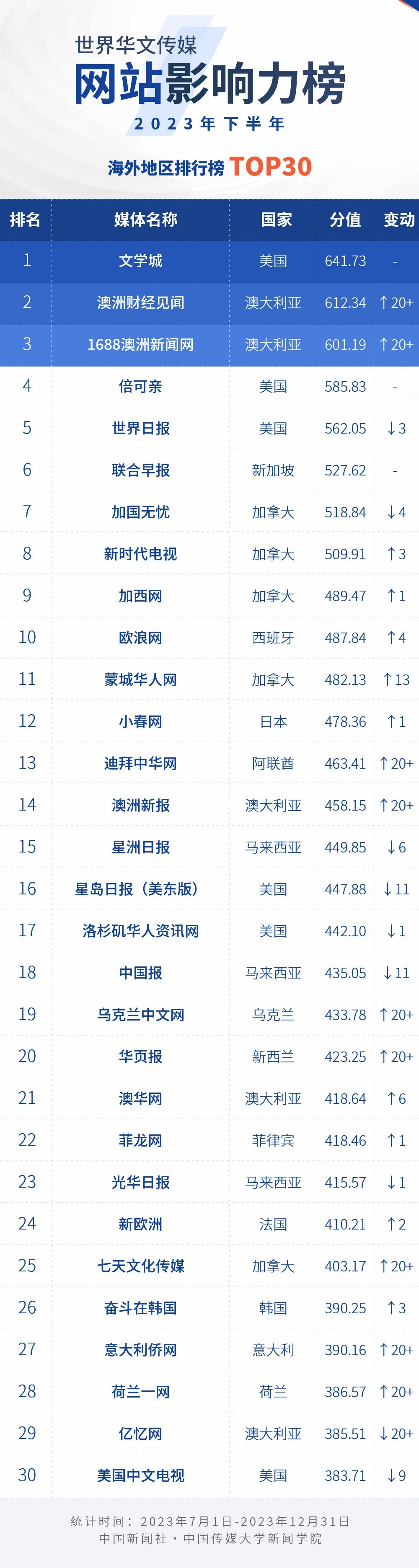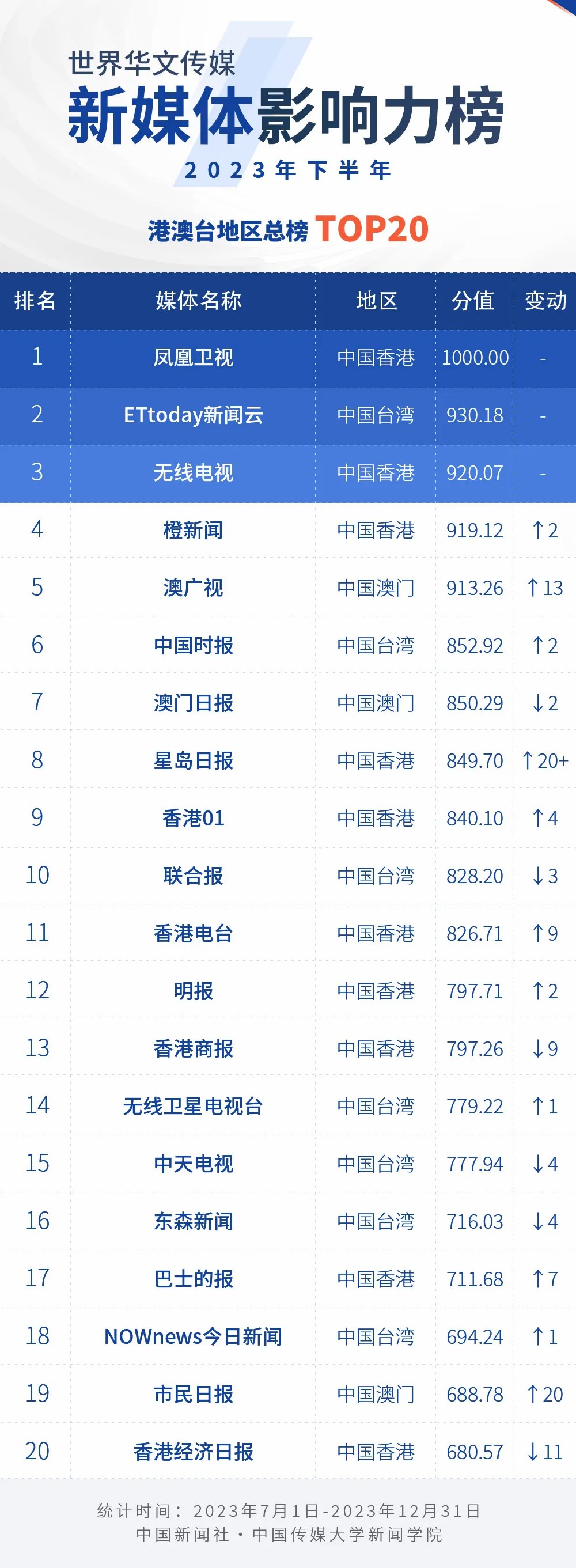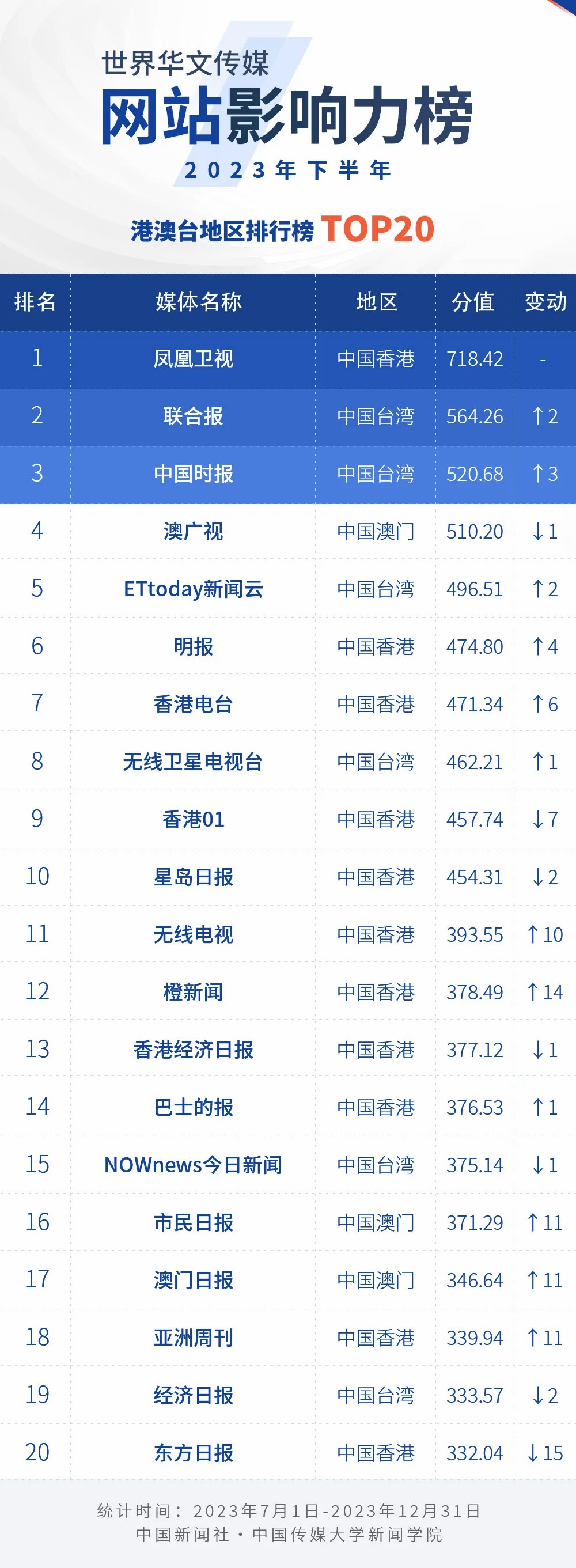中國新聞社與中國傳媒大學新聞學院持續(xù)開展“世界華文傳媒新媒體影響力”測評項目,現(xiàn)根據(jù)2023年下半年世界華文傳媒新媒體的業(yè)務(wù)數(shù)據(jù),發(fā)布2023年下半年榜。