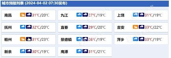 江西各城市天氣預報。(來源:中國天氣網)