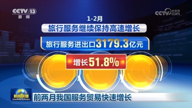 旅行服務(wù)增長(zhǎng)勢(shì)頭迅猛。1—2月,旅行服務(wù)繼續(xù)保持高速增長(zhǎng),旅行服務(wù)進(jìn)出口3179.3億元,增長(zhǎng)51.8%,成為服務(wù)貿(mào)易第一大領(lǐng)域。