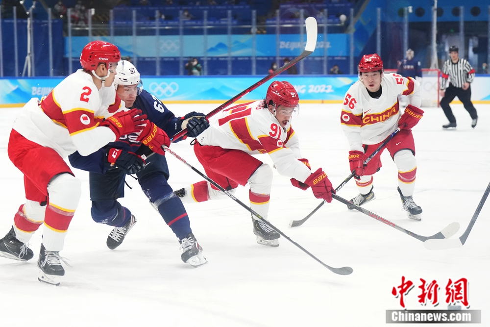 圖為冰球男子小組賽:中國隊(duì)對陣美國隊(duì)。中新社記者毛建軍攝