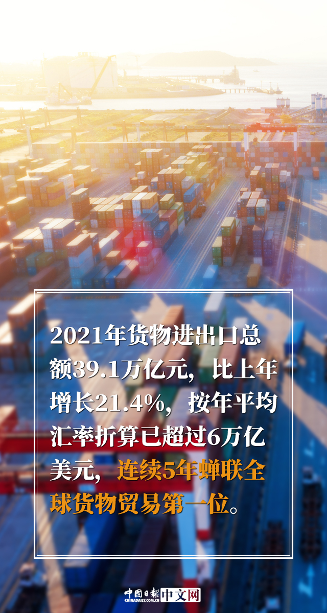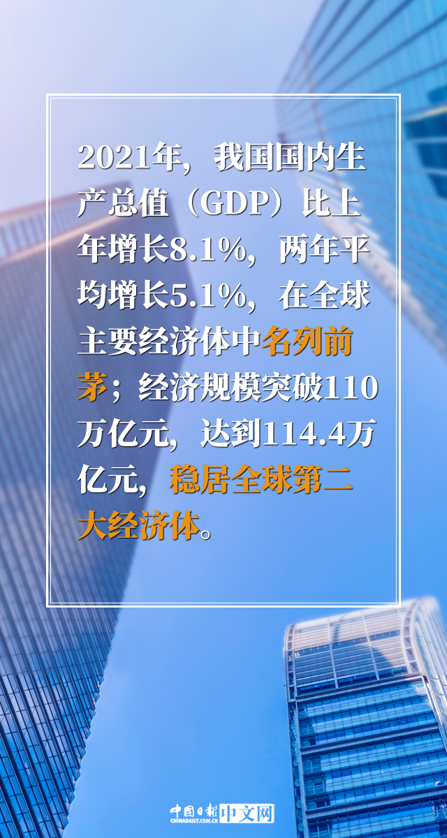 2021年,我國成功戰(zhàn)勝疫情等多重挑戰(zhàn),經(jīng)濟實力、社會生產(chǎn)力和綜合國力穩(wěn)步提高,改革開放創(chuàng)新深入推進,民生福祉持續(xù)提升,實現(xiàn)了“十四五”良好開局。最新發(fā)布的《2021年國民經(jīng)濟和社會發(fā)展統(tǒng)計公報》顯示,2021年,我國國內生產(chǎn)總值(GDP)比上年增長8.1%,兩年平均增長5.1%,在全球主要經(jīng)濟體中名列前茅;連續(xù)5年蟬聯(lián)全球貨物貿易第一位;主要工業(yè)產(chǎn)品產(chǎn)量穩(wěn)居世界首位……我國遞出了一份亮眼的“成績單”。