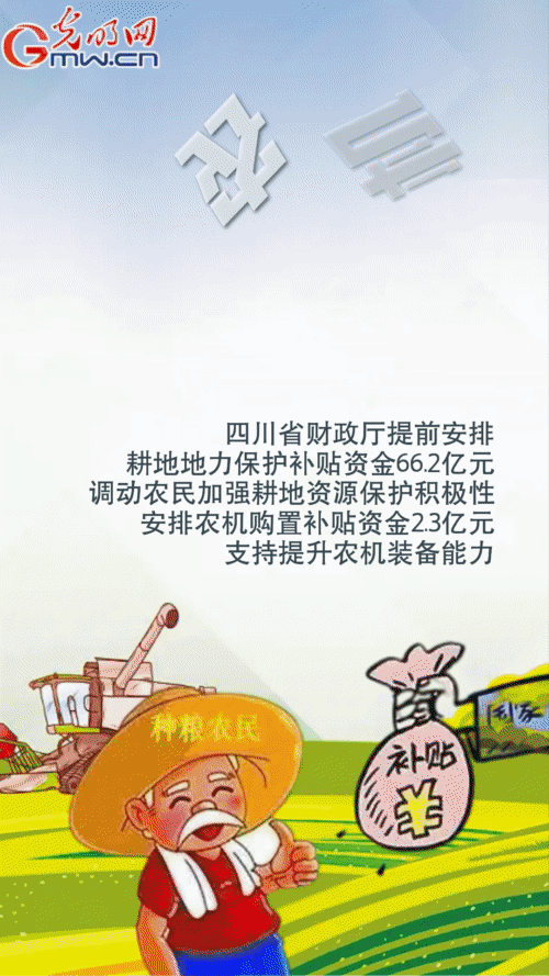 海南省財政廳安排糧食生產相關項目資金12.61億元,統(tǒng)籌土地出讓收入3.23億元用于高標準農田建設;四川省財政廳提前安排耕地地力保護補貼資金66.2億元,調動農民加強耕地資源保護積極性,安排農機購置補貼資金2.3億元,支持提升農機裝備能力。