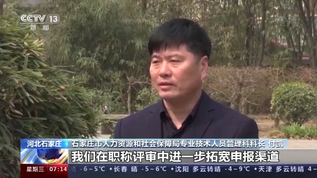 石家莊市人力資源和社會(huì)保障局專(zhuān)業(yè)技術(shù)人員管理科科長(zhǎng) 付凱:我們?cè)诼毞Q(chēng)評(píng)審中,進(jìn)一步拓寬申報(bào)渠道。對(duì)高校畢業(yè)生職稱(chēng)認(rèn)定從原來(lái)一年一次的集中初聘認(rèn)定,改為現(xiàn)在一月一次的考核認(rèn)定,實(shí)現(xiàn)人才職稱(chēng)的即報(bào)即審,對(duì)穩(wěn)定高校畢業(yè)生就業(yè)起到了保障作用,使得人才引得來(lái),留得住。