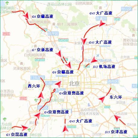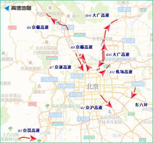 4日、5日12至20時(shí),進(jìn)京方向的交通壓力將明顯上升,其中京藏高速八達(dá)嶺、居庸關(guān)、西三旗、北沙灘,京承高速黃港、太陽(yáng)宮,京港澳高速西道口、琉璃河,京開高速榆垡、玉泉營(yíng)等路段車流較為集中。