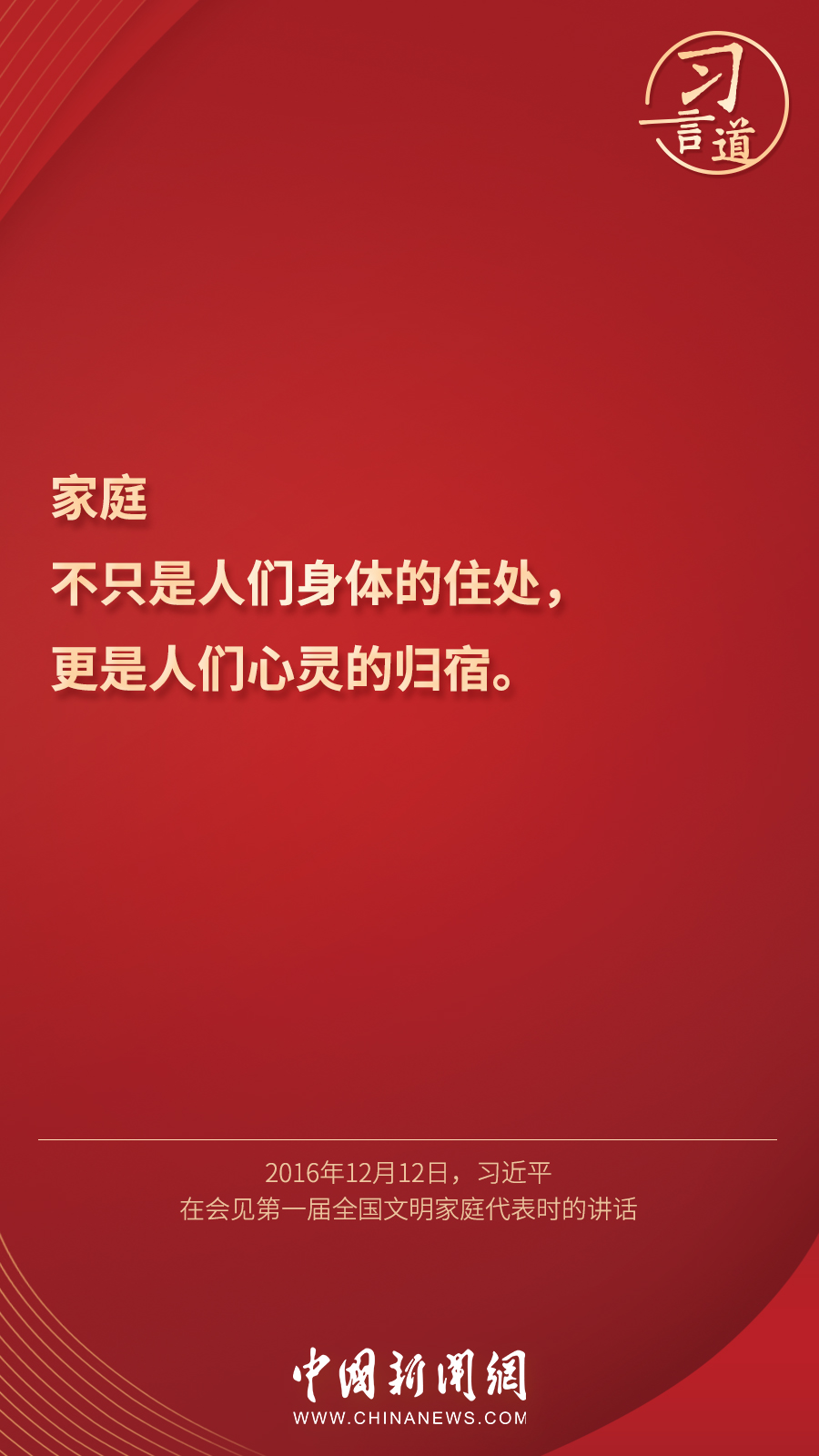 “家庭不只是人們身體的住處,更是人們心靈的歸宿?!苯陙?,習(xí)近平總書記發(fā)表過諸多關(guān)于重視親情、營造良好家風(fēng)的重要論述,他指出——